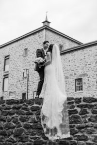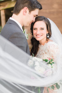 We typically schedule 45 minutes for bride + groom portraits if you're sharing in a first look. If you're not sharing in a first look, you can expect to have approximately 10 minutes for bride and groom photos. For this reason, we highly encourage a first look because your photos are the first things to get cut short if something runs behind.